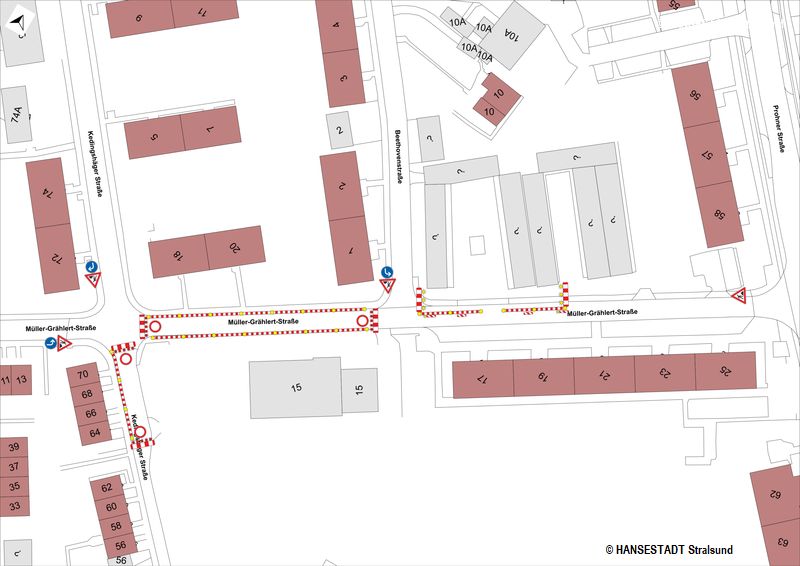 Dazu werden die Müller-Grählert-Straße zwischen Beethovenstraße und Kedingshäger Straße und die Kedingshäger südlich der Einmündung Müller-Grählert-Straße voll gesperrt.